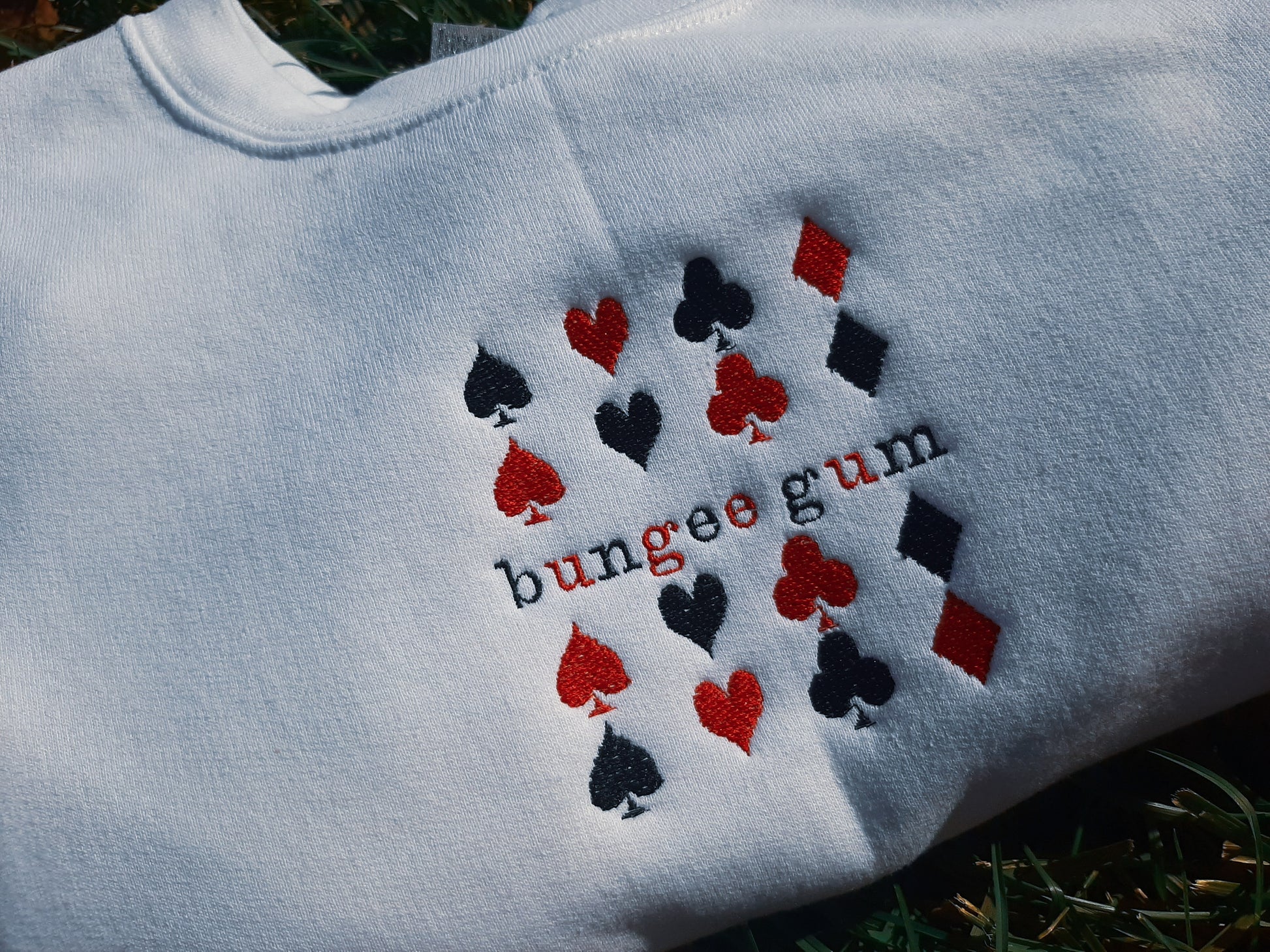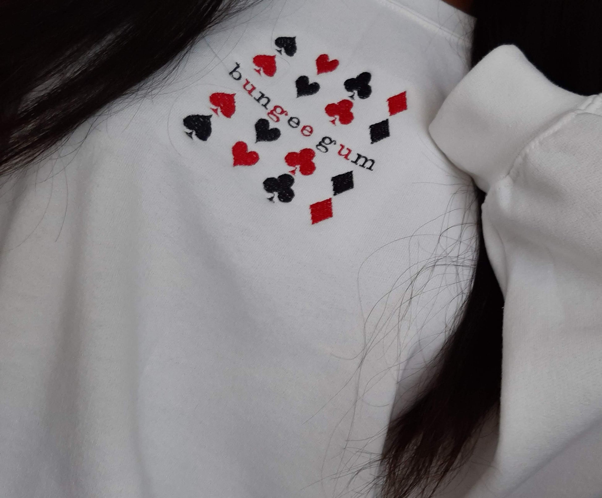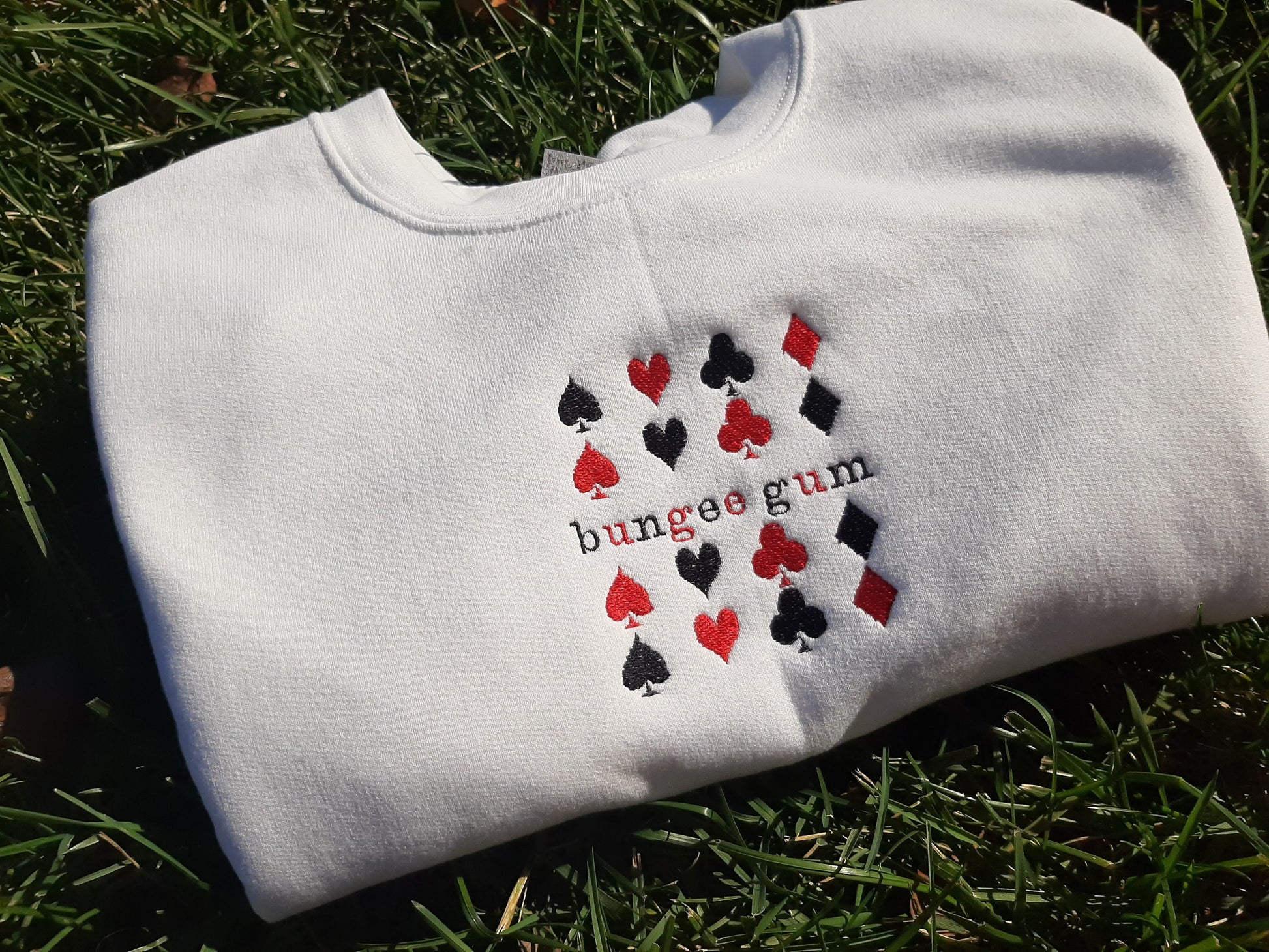 Bungee gum embroidered sweater inspired by Hisoka ♥️♠️♥️♣️♦️